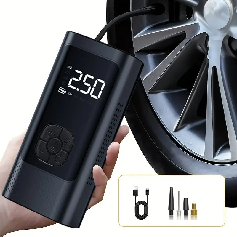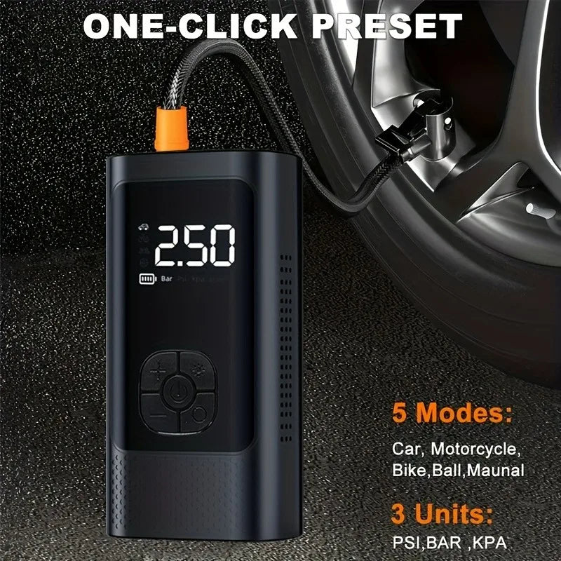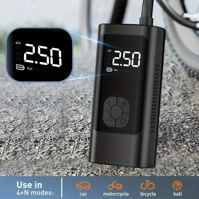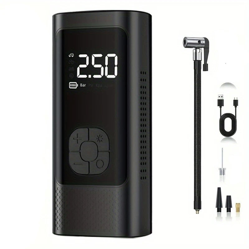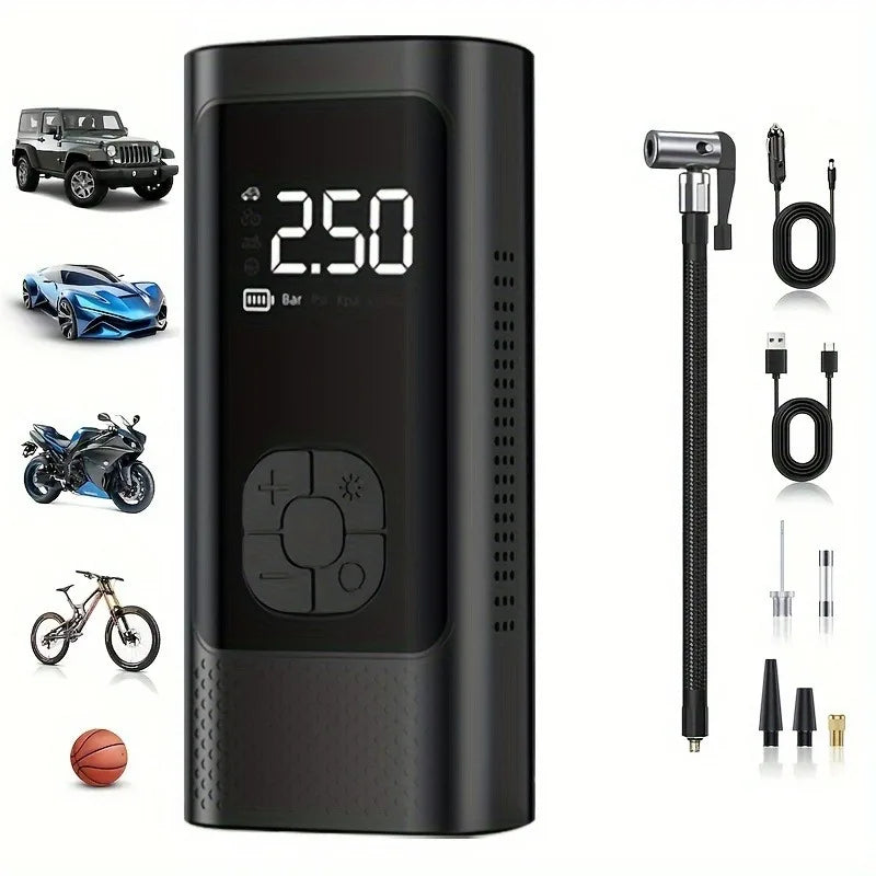 AirGo smart portable compressor with digital display and LED lighting, for car, motorbike, bicycle and ball tyres