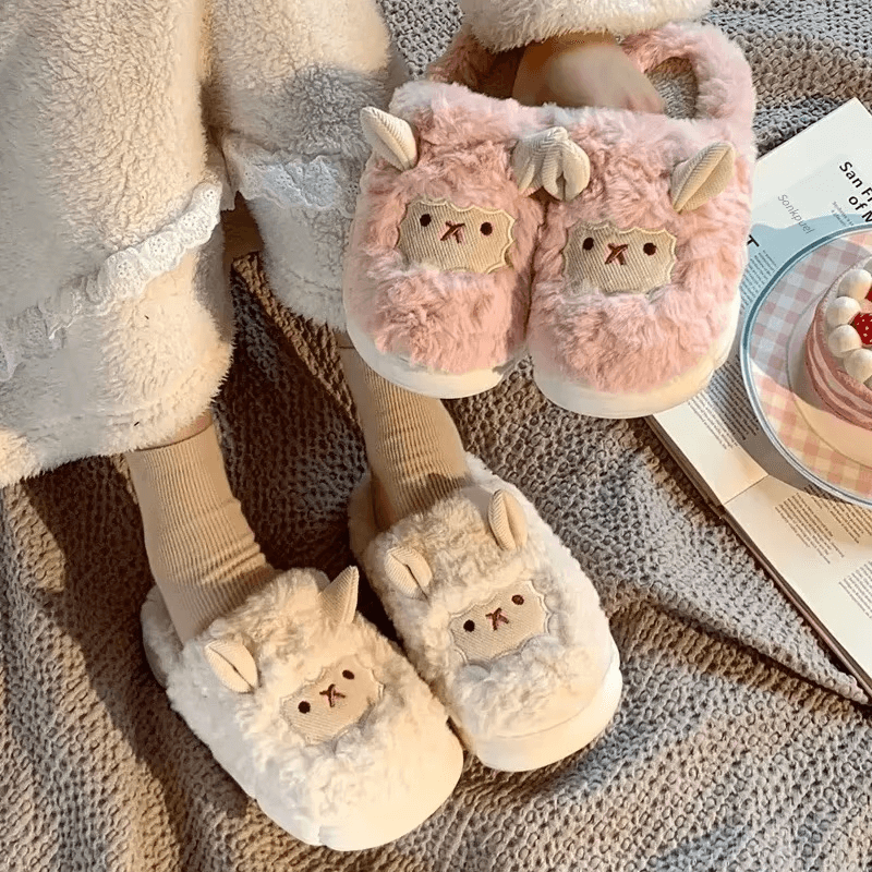 Sheep Plush Slippers – Cozy Comfort for Winter